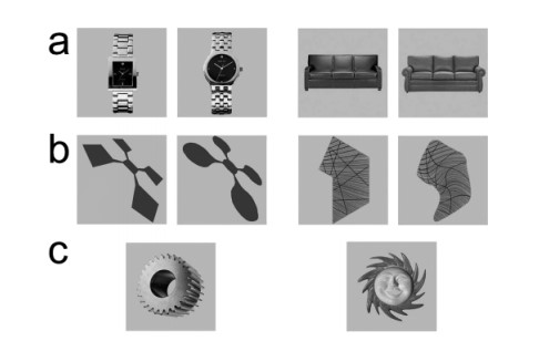 While Moshe Bar was the director of the Cognitive Neuroscience Laboratory at Massachusetts General Hospital he and his team used images of everyday and abstract objects to see if people had a preference for objects with curves. In one of their early studies, Bar and Maital Neta (2006) showed people 140 pairs of objects. Some objects were concrete, such as watches or couches (the A objects in Figure 1.1), some were abstract (the B objects), and some had both curves and edges (the C objects). The C objects acted as baseline controls.